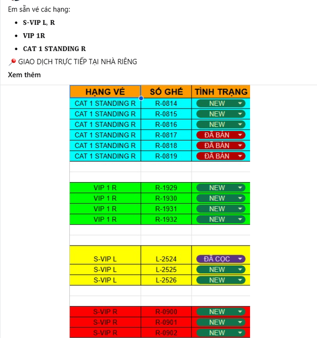 Dù chương trình đã thông báo cháy vé ngay từ ngày 22/5 - tức thời điểm mở bán - thế nhưng, liên tục những ngày sau đó, tại những nhóm "chợ đen" online vẫn không ngừng xuất hiện các bài đăng rao bán vé với đủ mọi hình thức: từ vé thường, vé nội bộ cho đến các loại vé VIP.