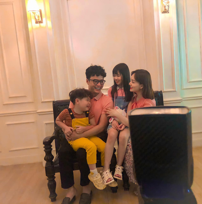Hồng Đăng có tạo hình khác lạ trong phim mớiTrong bức ảnh được chia sẻ, có thể thấy Hồng Đăng - Lan Phương vào vai cặp vợ chồng có hai người con, 1 gái - 1 trai vô cùng xinh xắn, đáng yêu. Trong dự án này, Hồng Đăng có tạo hình là mái tóc xoăn và cậu "con trai" của anh cũng có mái tóc giống y hệt.
