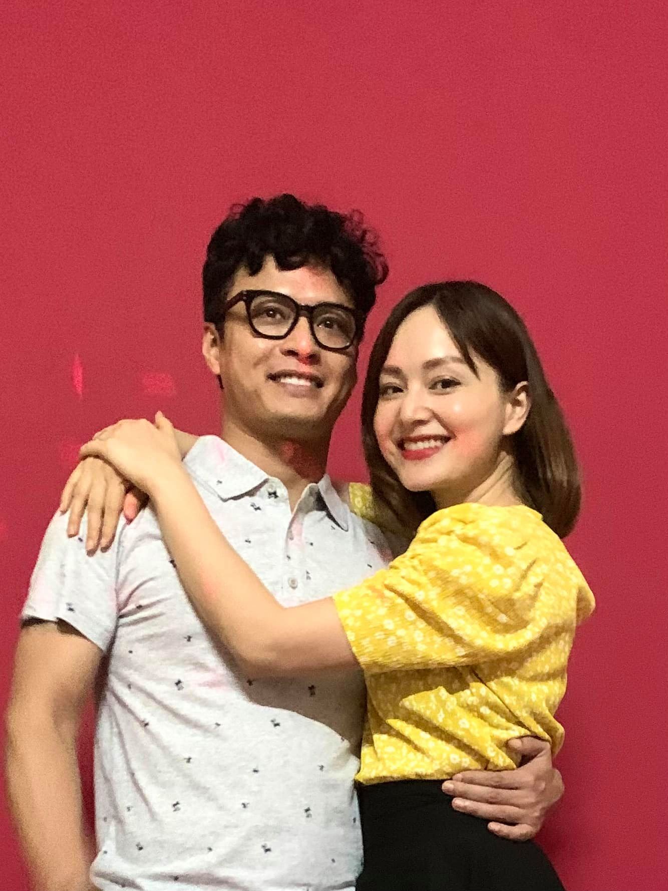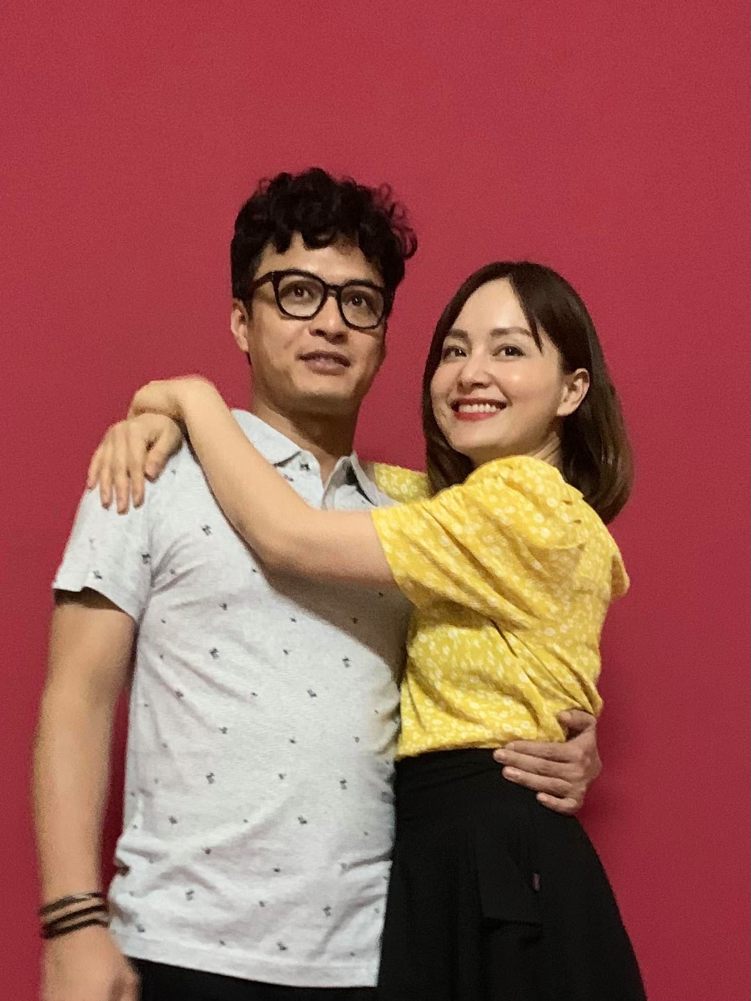 Chả là do từ bấy đến giờ toàn đóng yêu đương bằng cách nhìn nhau với Hồng Diễm thôi, nên giờ anh ý ngại ngùng, ngượng ngập lắm. Đừng lo nhé, em xin phép chồng em rồi".