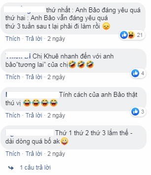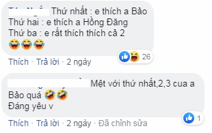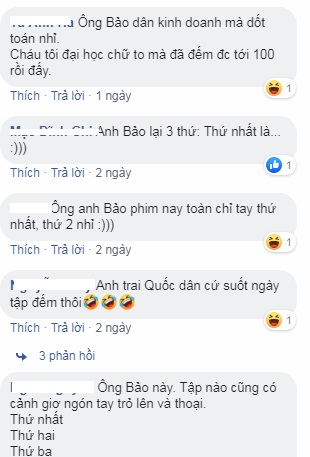 Mặc dù khen ngợi lời khuyên bổ ích dành cho em gái nhưng các khán giả cũng không quên 'troll' anh chàng vì luôn trò chuyện 'có nguyên tắc': 'Anh Bảo suốt ngày thứ nhất, thứ 2, thứ 3. Bao giờ mới đến chủ nhật hả anh'; 'Cả phim chỉ thấy anh tập đếm'; 'Mọi người thông cảm, anh 'Bảo tuần lộc' quen đếm sừng rồi'; 'Tập nào cũng giơ tay đếm, mệt với anh quá. Nhưng mà đáng yêu'; 'Thứ nhất: Em thích anh Bảo. Thứ hai: Em thích anh Hồng Đăng. Thứ ba: Em rất thích cả hai anh!'; 'Tính cách nhân vật Bảo thật thú vị!'; 'Ông Bảo cứ 1, 2, 3 sốt hết cả ruột tuy nhiên nói câu nào chuẩn câu nấy không cãi vào đâu được. Mấy câu khuyên San chuẩn quá còn gì!'...