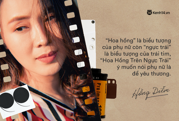 Thực ra đây là chủ ý của bên VFC, tôi là diễn viên thì cũng không có tác động gì liên quan đến việc thay đổi tên phim cả. Có điều là bộ phim này muốn hướng đến vai trò của người phụ nữ trong gia đình, hướng đến hình ảnh nữ quyền, có lẽ vì thế mà VFC muốn nhấn mạnh về điều đó. “Hoa hồng” là biểu tượng của phụ nữ còn “ngực trái” là biểu tượng của trái tim, “Hoa Hồng Trên Ngực Trái” đem đến thông điệp phụ nữ là để yêu thương mà VFC muốn gửi đến khán giả.