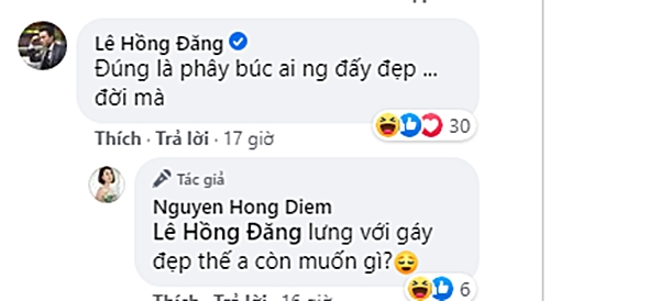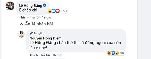 Bên dưới bài viết của Hồng Diễm, nam diễn viên Hồng Đăng cũng vào "góp vui" bằng những bình luận cực hài hước: