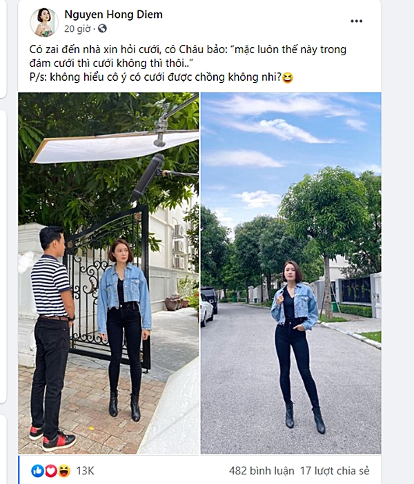 Mới đây, diễn viên Hồng Diễm đã khiến các fan thích thú khi chia sẻ hình ảnh của cô và Hồng Đăng trên phim trường Hướng dương ngược nắng cùng dòng trạng thái: "Có trai đến nhà xin hỏi cưới, cô Châu bảo: “Mặc luôn thế này trong đám cưới thì cưới không thì thôi”.
