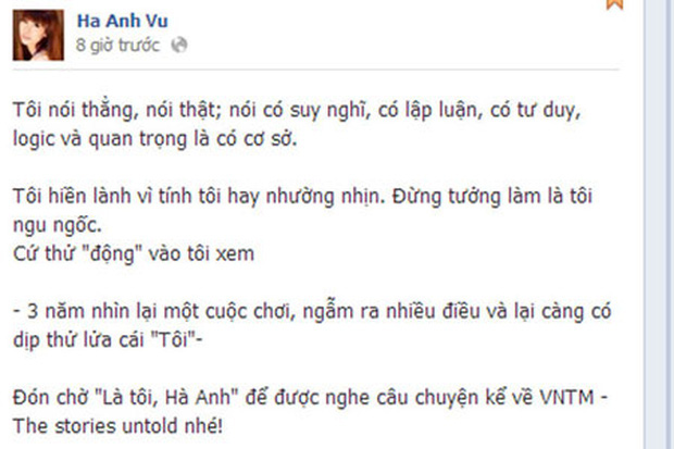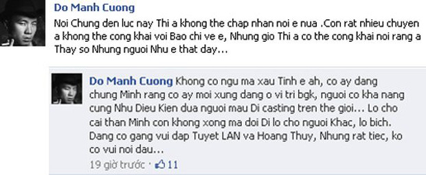 Bên cạnh đó, Đỗ Mạnh Cường còn cho rằng Hà Anh xấu tính vì đang cố chứng minh rằng chỉ bản thân mình mới xứng đáng ở vị trí BGK: "Lo cho cả thân mình còn không xong mà đòi đi lo cho người khác, lố bịch. Đang cố gắng vùi dập Tuyết Lan & Hoàng Thùy nhưng rất tiếc, không có vui nổi đâu".