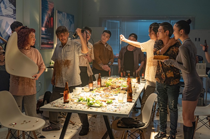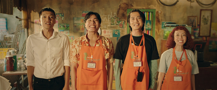 Bên cạnh những pha tấu hài cười ra nước mắt tới từ cả “phe ta” và “phe địch”, trailer còn nhá hàng một số phân đoạn “giáp lá cà” của biệt đội bán cơm: từ cú phi mô tô siêu đẳng của chú Thái, pha đu mình khỏi lan can tầng hai của Thu, cú trượt dài điệu nghệ kèm nụ hôn gió của Phú hay cảnh phi thân đỡ đạn cho Vinh của Thu và Phú.