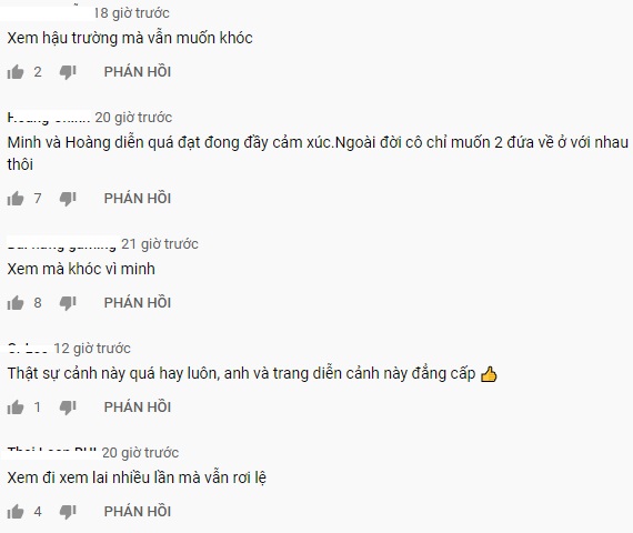 Tuy nhiên, nhiều khán giả không quan tâm đến việc Việt Anh và Lương Thu Trang đã quay lại bao nhiêu lần. Họ dành sự khen ngợi cho cả hai khi đem đến cảnh phim xuất sắc, chạm đến cảm xúc và lấy đi nước mắt của khán giả. Đặc biệt, nhiều người tán dương diễn xuất của Lương Thu Trang trong trường đoạn cực khó này, thậm chí có ý kiến cho rằng đây là cảnh phim xuất sắc nhất của cô từ đầu phim đến nay.