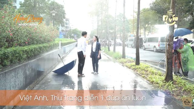 Mới đây, ekip đã hé lộ hậu trường cảnh quay cực khó, bùng nổ cảm xúc này của Lương Thu Trang và Việt Anh. Những gì khán giả thấy trên phim là cơn mưa tầm tã khiến cả Minh và Hoàng đều ướt nhẹp. Nhưng thực tế trên phim trường, đó lại là một cơn mưa nhân tạo bằng 3 vòi nước. Quay cảnh phim này, diễn viên Lương Thu Trang và Việt Anh kết hợp rất ăn ý, cả một đoạn thoại dài nhưng Lương Thu Trang không nói vấp một từ.
