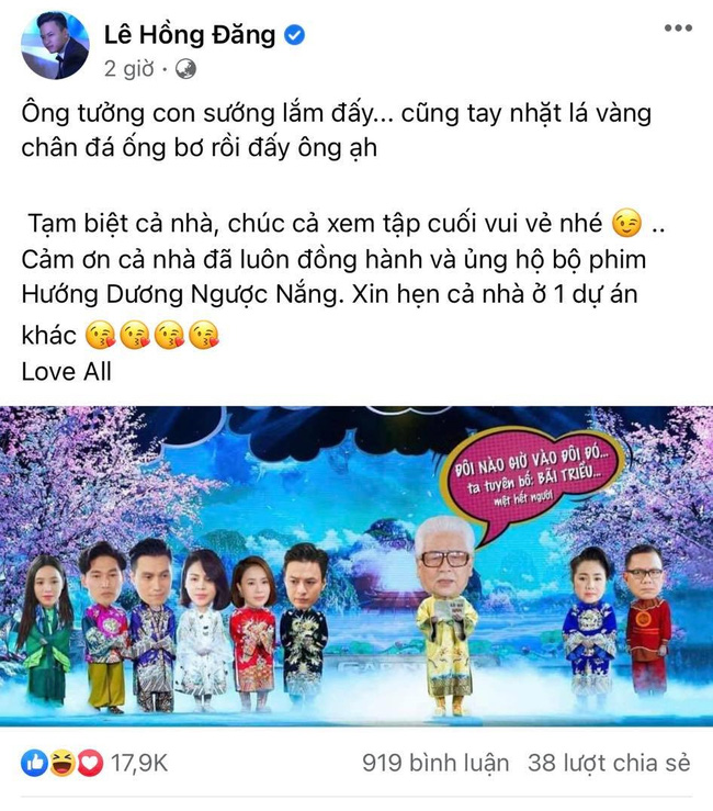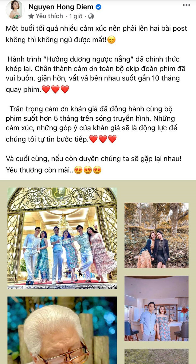 Bộ phim Hướng dương ngược nắng đã chính thức khép với cái kết đầy viên mãn, làm hài lòng số đông khán giả. Sau khi phim kết thúc, dàn diễn viên đồng loạt chia sẻ cảm xúc, đăng tải lời cảm ơn đến khán giả và ekip trên mạng xã hội.