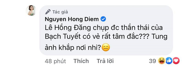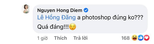Bên dưới bài đăng của Hồng Diễm, Hồng Đăng tiếp tục đăng ảnh 'mặt nọng' để trêu đùa cô nàng khiến Hồng Diễm cho rằng anh đang vô cùng tâm đắc khi chụp được khoảnh khắc 'dìm hàng' mình.