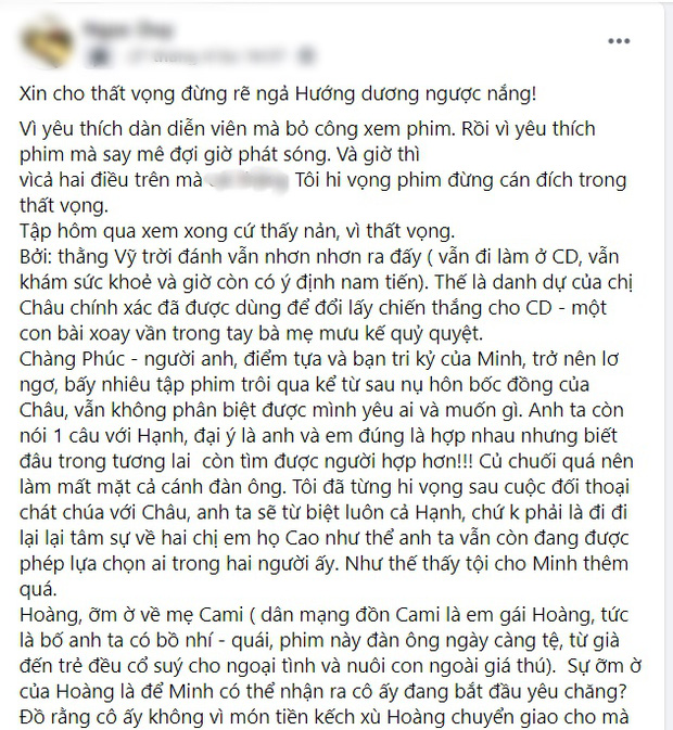 Một số phản hồi của khán giả về Hướng Dương Ngược Nắng trong thời gian gần đây: