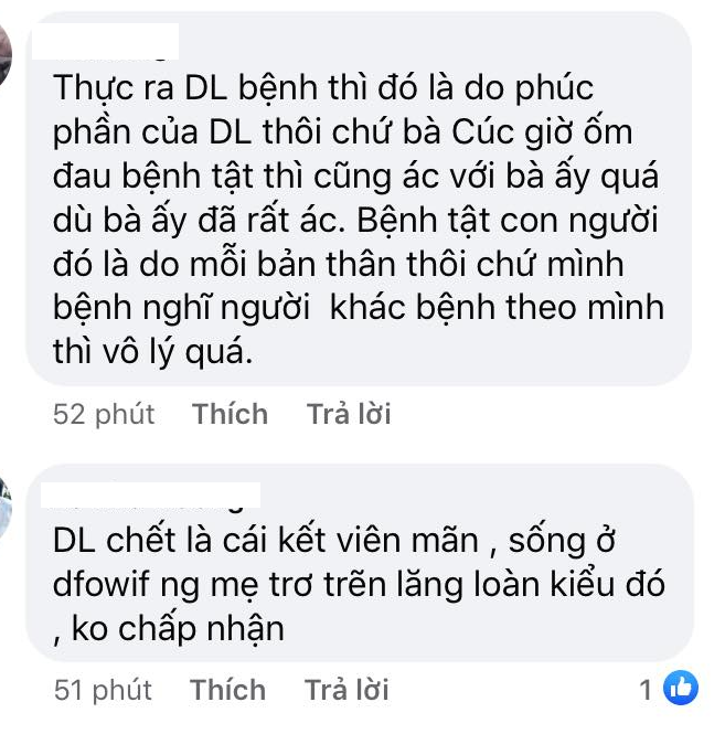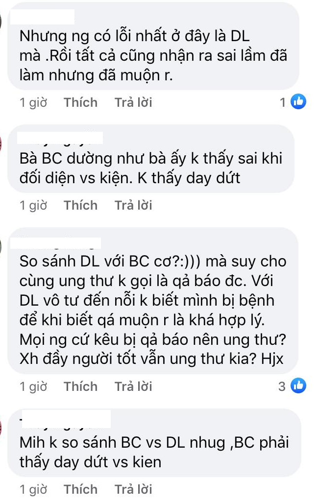 Thế nhưng khi Diễm Loan bị ung thư giai đoạn cuối, khán giả vẫn không ngừng tranh cãi. Trên mạng xã hội, dân mạng chia làm nhiều luồng ý kiến trái chiều.