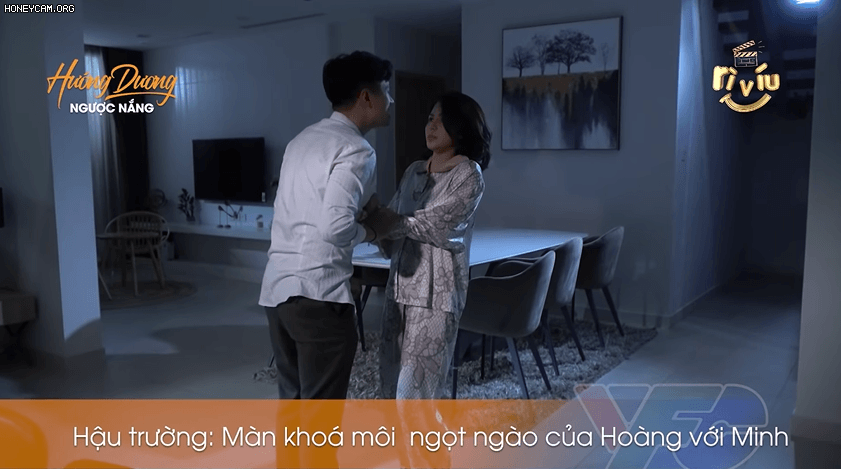 Hướng dương ngược nắng vừa tung ra clip ghi lại cảnh hậu trường Hoàng - Minh (Việt Anh - Lương Thu Trang) hôn nhau từng được lên sóng.