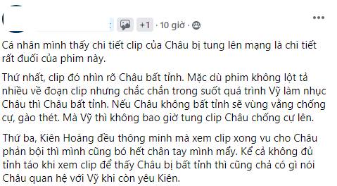 Chưa kể, đoạn clip full HD sắc nét rõ ràng cho thấy Châu bị hại, không hiểu sao một người thông minh, từng là thư ký tập đoàn lớn như Kiên lại phán đoán rằng Châu 'tự nguyện' với Vỹ. Trong khi đó, khi còn ở Cao Dược và yêu Châu, Kiên thừa biết Châu và cả gia đình cô ghét bố con Vỹ như thế nào. Kiên cũng biết Vỹ luôn muốn tìm cách giở trò với Châu và đã từng cảnh cáo hắn. Cư dân mạng thắc mắc Kiên dựa vào đâu khi cho rằng Châu và Vỹ lén lút hẹn hò sau lưng mình.
