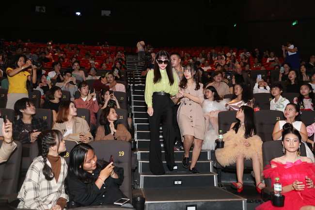 Không ít khán giả thắc mắc và tò mò vì sao Hương Giang lại đeo kính đen khi bước vào rạp phim. Sau đó, Hương Giang ngại ngùng cho biết đang bị đau mắt nên phải đeo kính đen để 'ngụy trang'.