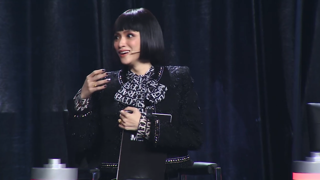 Chưa dừng tại đó, khi nghe host Dược sĩ Tiến ẩn ý mình nói nhiều, Hà Hồ đã lập tức khẳng định: "Mẹ nói nhiều nhưng mẹ nói hay chứ mẹ không có luyên thuyên".