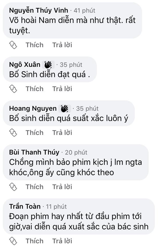 Sau khi phim kết thúc phát sóng, trên mạng xã hội bùng nổ những lời khen ngợi cho diễn xuất đỉnh cao của NSƯT Võ Hoài Nam sau 16 năm vắng bóng. Nhiều người bày tỏ họ không thể cầm được nước mắt khi xem cảnh phim gây xúc động mạnh này.
