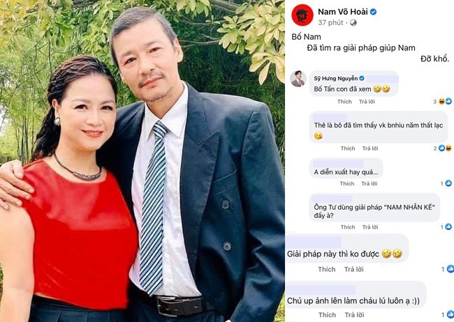 Nam diễn viên đăng tải hình ảnh ông Sinh và bà Sa tình tứ bên nhau lên mạng xã hội cùng dòng trạng thái: "Bố Nam đã tìm ra giải pháp giúp Nam đỡ khổ."