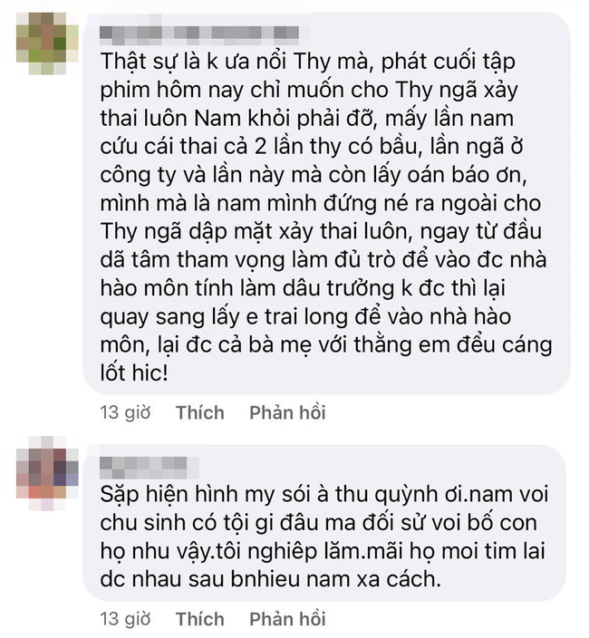 Sau khi tập phim kết thúc, Thu Quỳnh đã đăng ảnh Thy bị ngã "sấp mặt" lên trang cá nhân kèm dòng trạng thái hài hước: "Rồi, ngã sao cho ngầu nhỉ?". Lập tức, bức ảnh thu hút nhiều bình luận của khán giả. Bên cạnh những fan văn minh khen ngợi diễn xuất của Thu Quỳnh thì cũng có rất nhiều antifan hay những người xem không phân biệt được phim và đời vào... chửi bới, miệt thị nhân vật Thy và Thu Quỳnh. Đỉnh điểm, có khán giả còn công khai vào mắng Thu Quỳnh bằng một bình luận tục tĩu.