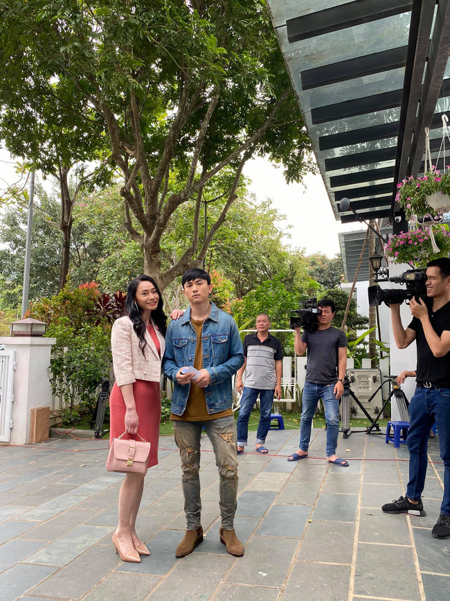 Quách Thu Phương đã chụp ảnh cùng cặp đôi diễn viên Thu Quỳnh - Anh Vũ (trong vai Thy - Huy). Nếu như bà Xuân diện áo dài thì Huy - Thy mặc đồ trắng ton sur ton.