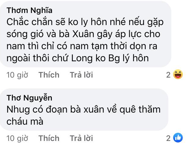 Theo như bản gốc, Nam và Long sớm hợp thì cũng sớm tan, hạnh phúc chưa được bao lâu thì cặp đôi đã ký đơn ly dị. Lý do là bởi quá khứ của ông Sinh bại lộ. Chuyện bố Nam từng giết người phải ngồi tù đã khiến cuộc đời Nam điêu đứng, bị em dâu cũng là con gái của người bị giết hại bóc phốt giữa đường và bị chính ông Khang đã yêu cầu Nam chia tay Long trong lặng lẽ.