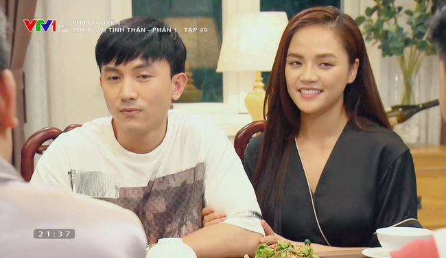 Sau đó, trong bữa cơm sau khi cả hai đi trăng mật về, vẫn là Thy thân mật khoác tay Huy trên bàn ăn, nơi có mặt cả bố mẹ chồng, anh chồng, bà nội chồng. Ở Hương vị tình thân tập 50 phát sóng tối qua, trước mặt bà Sa, Thy và Huy cũng thân thiết như chốn không người, hết khoác tay âu yếm lại nói những lời ngọt ngào sến sẩm.