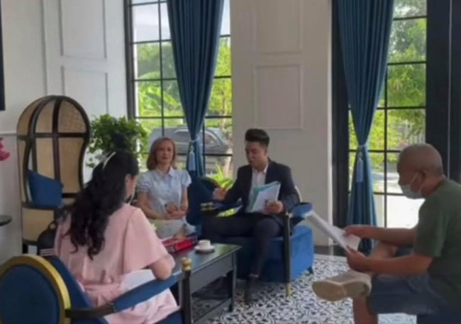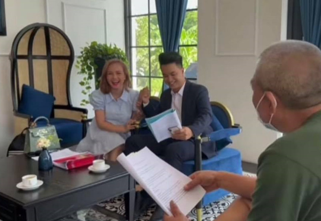 Người này chụp hình "tự sướng" cùng Mạnh Trường. Trong hậu trường, còn có cảnh người này ngồi cạnh diễn viên Hoàng Yến (Về nhà đi con). Trong phim, Hoàng Yến thủ vai Nguyệt - một người bạn chơi chung hội với bà Xuân.