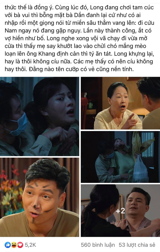 Theo thành viên này chia sẻ, bà Dần trong lúc chơi tam cúc với Long dường như đã linh tính điều gì đó nên nhất quyết giục Long đi tìm 'vợ'. Tuy nhiên, khi Long chuẩn bị đến nhà Nam thì gặp bà Xuân về nhà trong bộ dạng say khướt.