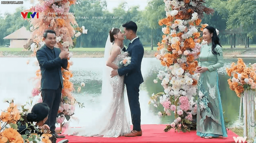 Hương vị tình thân phần 2 tập 26 lên sóng tối qua khiến nhiều khán giả lâng lâng hạnh phúc vì cuối cùng cặp đôi chính Long - Nam cũng về chung một nhà. Thế nhưng ở phân cảnh đám cưới đẹp như mơ, cảnh hôn của cặp đôi chính bất ngờ bị fan la ó vì "không thật". Cụ thể, fan soi rất kỹ cảnh hôn này và cho rằng chú rể thực chất không hôn lên môi mà chỉ hôn... cằm cô dâu.