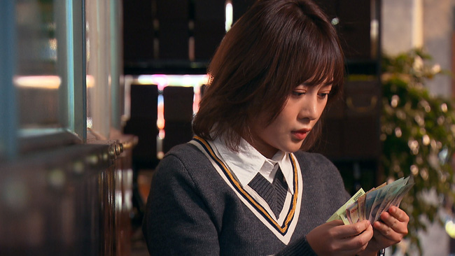 Sau đó, Nam nhìn về phía Long cầu cứu, hỏi rằng mình xin ứng lương trước liệu có được không? Nào ngờ Long đồng ý ngay, còn hào phóng đưa thẻ cho nhân viên quán để thanh toán. Thấy thế, Nam lập tức xua tay, ra hiệu Long rút thẻ về vì cô chỉ đùa anh, xem độ hào phóng của anh đến thế nào mà thôi. Kết quả, Nam phải vét hết tiền trong ví vì giá khá đắt đỏ. Hành động của Nam khiến Long cười tủm tỉm suốt với biểu cảm sinh động trên gương mặt.