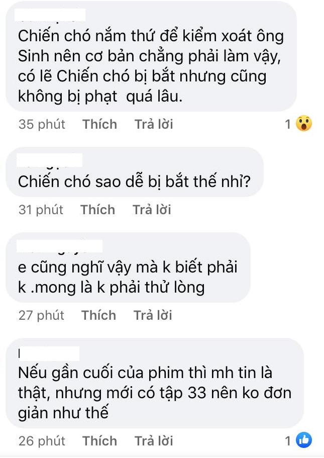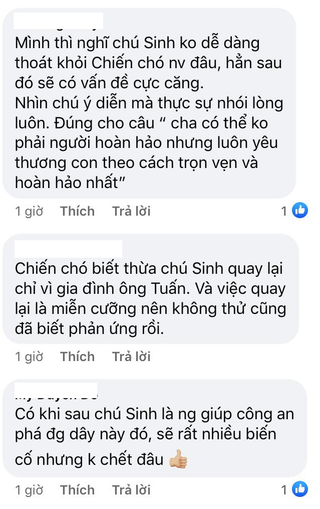 Tuy nhiên, trên mạng xã hội, nhiều khán giả lo lắng đây chỉ là màn thử của Chiến 'chó' dành cho ông Sinh. Dân mạng cho rằng Chiến 'chó' không dễ dàng bị bắt như vậy trong khi số khác tin ông Sinh chính là người đã báo công an.
