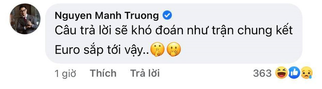Trong bài đăng của thành viên ê kíp làm phim liên quan đến tình huống này, diễn viên Mạnh Trường cũng đã vào bình luận. "Shark" Long của Hương vị tình thân khiến khán giả càng thêm thấp thỏm khi úp mở: "Câu trả lời sẽ khó đoán như trận chung kết Euro sắp tới vậy".