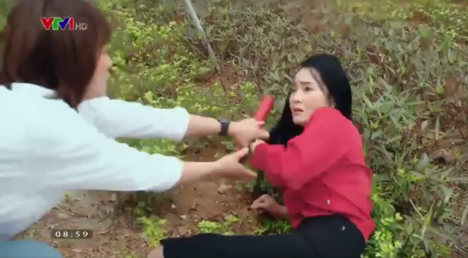 Trước thái độ của ông Sinh, bà Xuân sợ hãi ngã lăn ra vệ cỏ. Nam thấy vậy vội can ngăn ông Sinh rồi đưa tay đỡ bà Xuân dậy nhưng bà tức giận hất tay cô ra.
