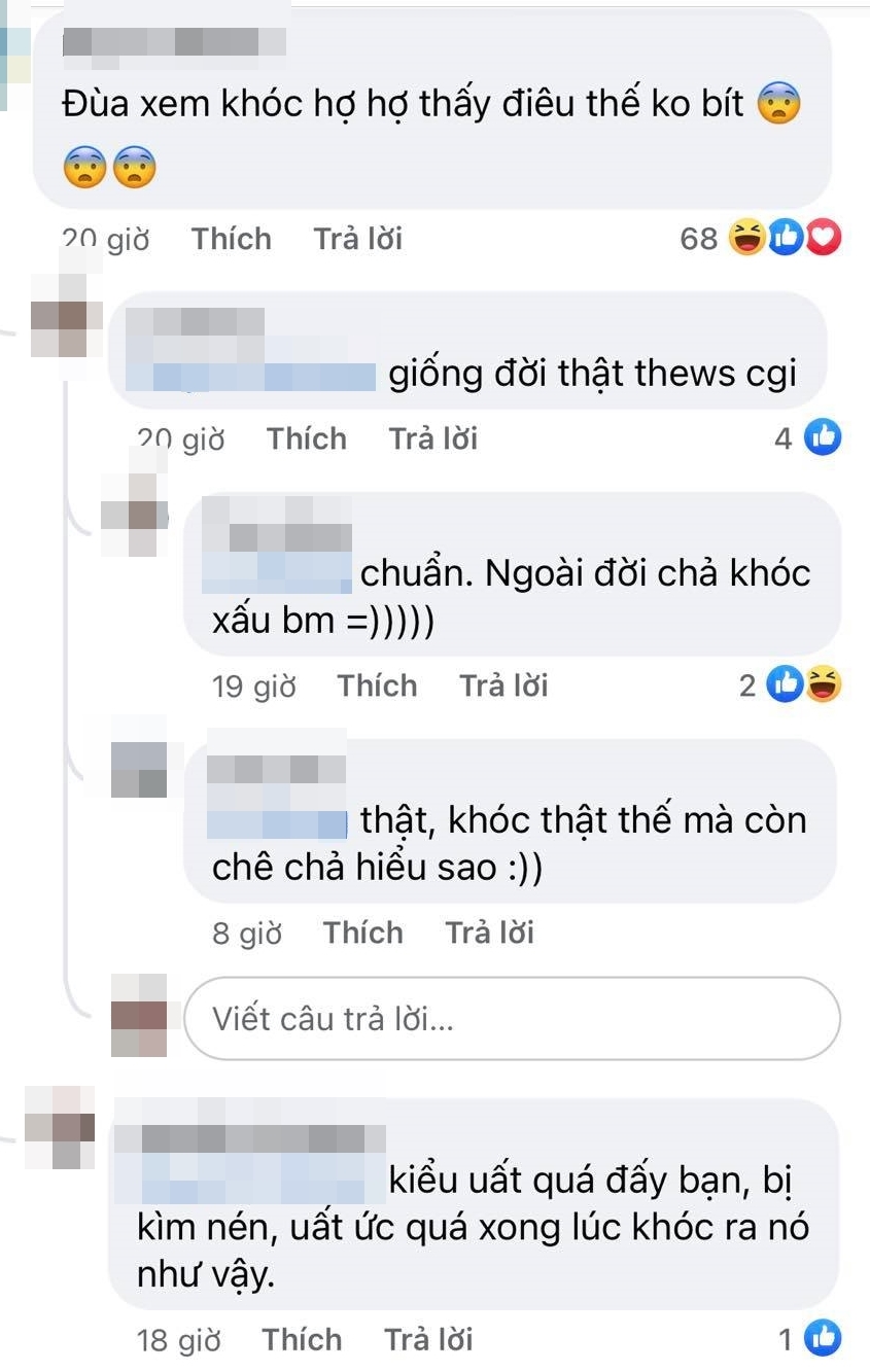 Trong đó, nữ diễn viên cũng viết một câu khiến nhiều người cho rằng cô đang cảm thấy buồn bực vì bị ném đá vì cảnh khóc: "Buồn quá, tủi thân quá mình khóc nấc như trẻ con cũng không ai vừa lòng... Mình phải làm sao đây?".