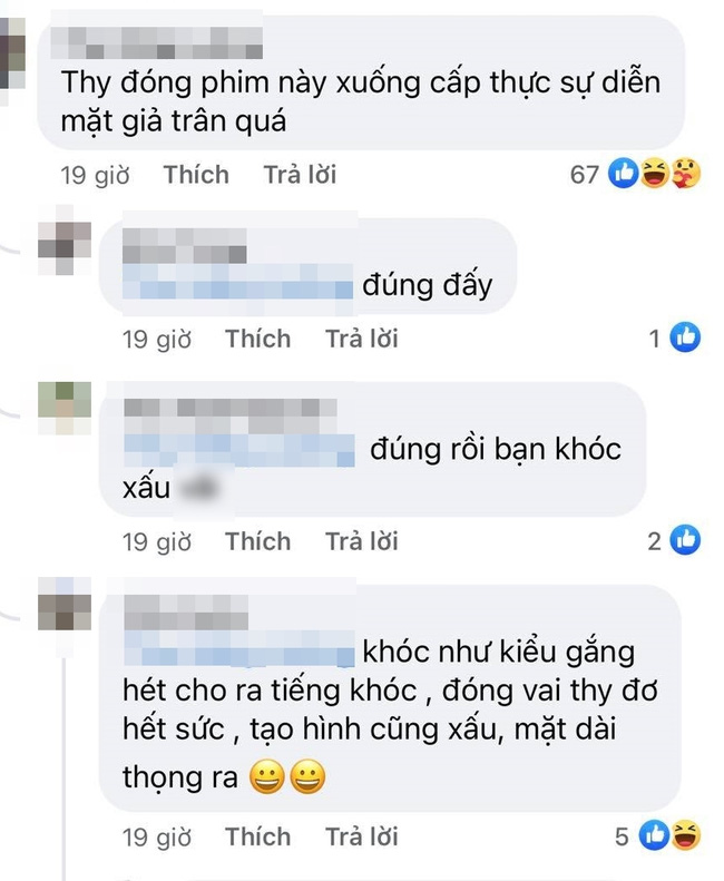 Tuy nhiên, bên cạnh đó, cũng có những ý kiến bảo vệ Thu Quỳnh. Một số khán giả cho rằng, ở ngoài đời, chẳng mấy ai khóc mà đẹp. Cảnh quay này phản ánh đúng thực tế. Đây là khi nhân vật Thy quá uất ức, sau rất nhiều kìm nén, cô như vỡ òa ra trong cảm xúc đau khổ, tủi thân...