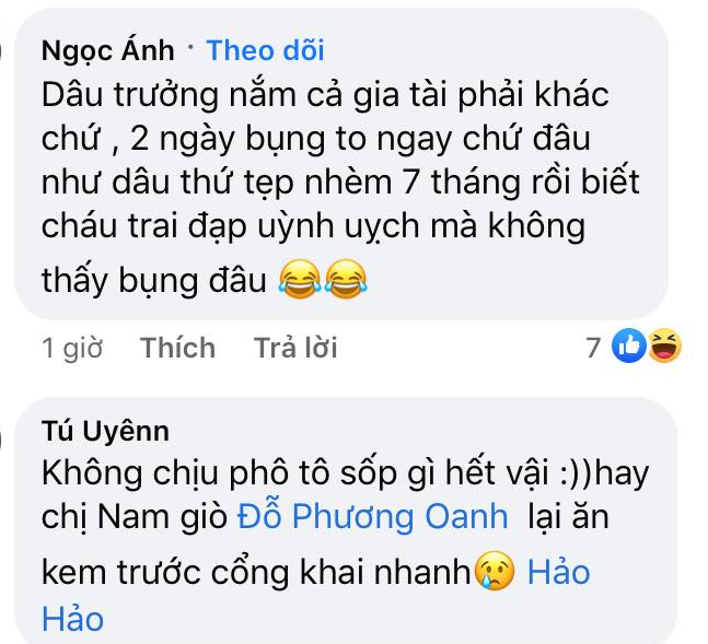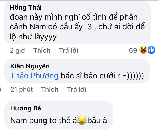 Số khác cho rằng Phương Oanh đã phải lên cân khá nhiều để vào vai Nam. Từ đầu phim, Nam thường diện những trang phục phom dáng rộng, thoải mái. Vì vậy, khi diện váy bó sát đã vô tình để lộ vòng eo khá to mà thôi.