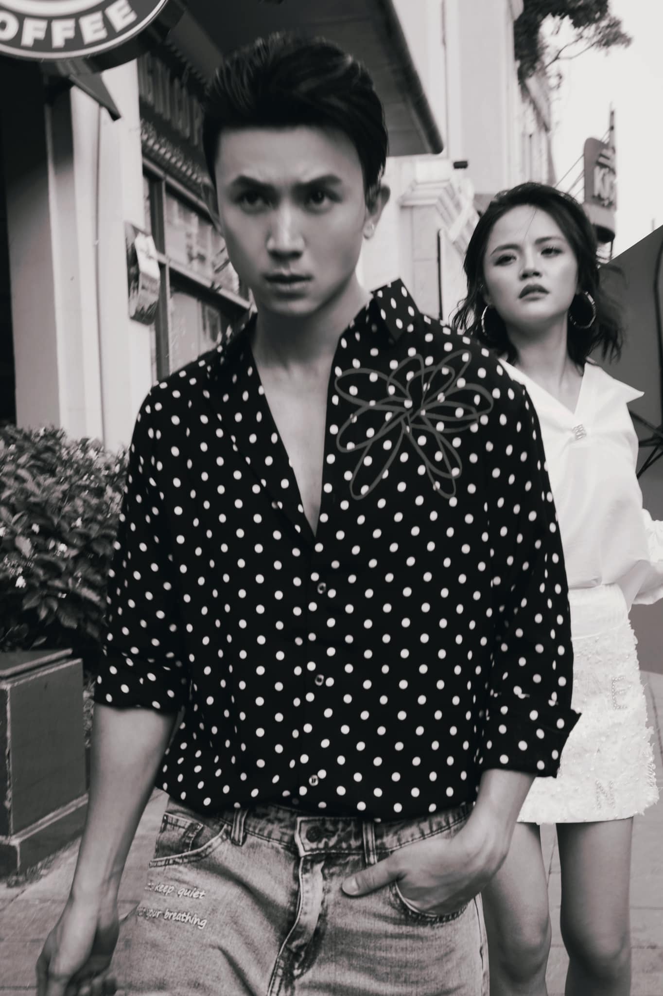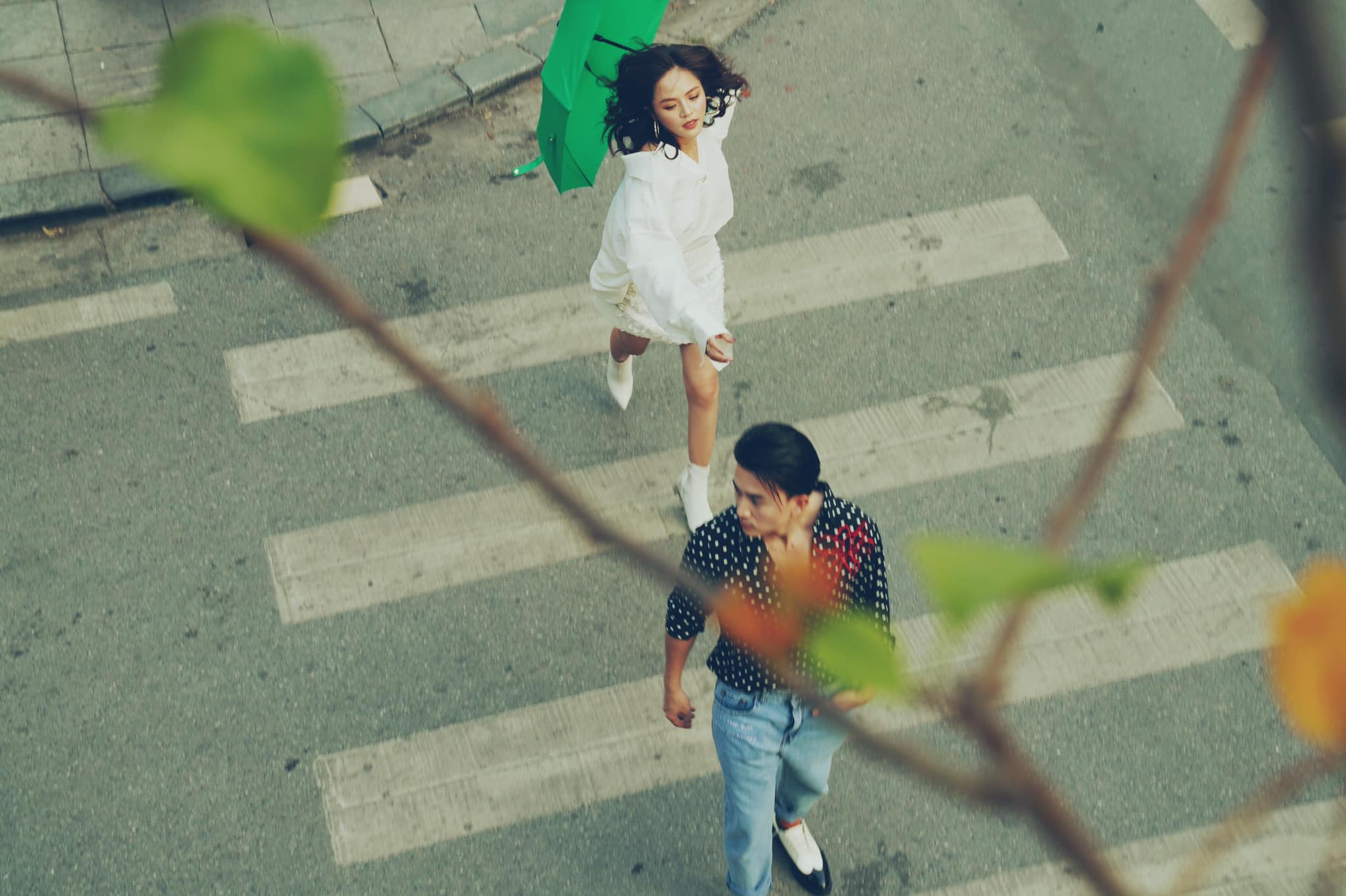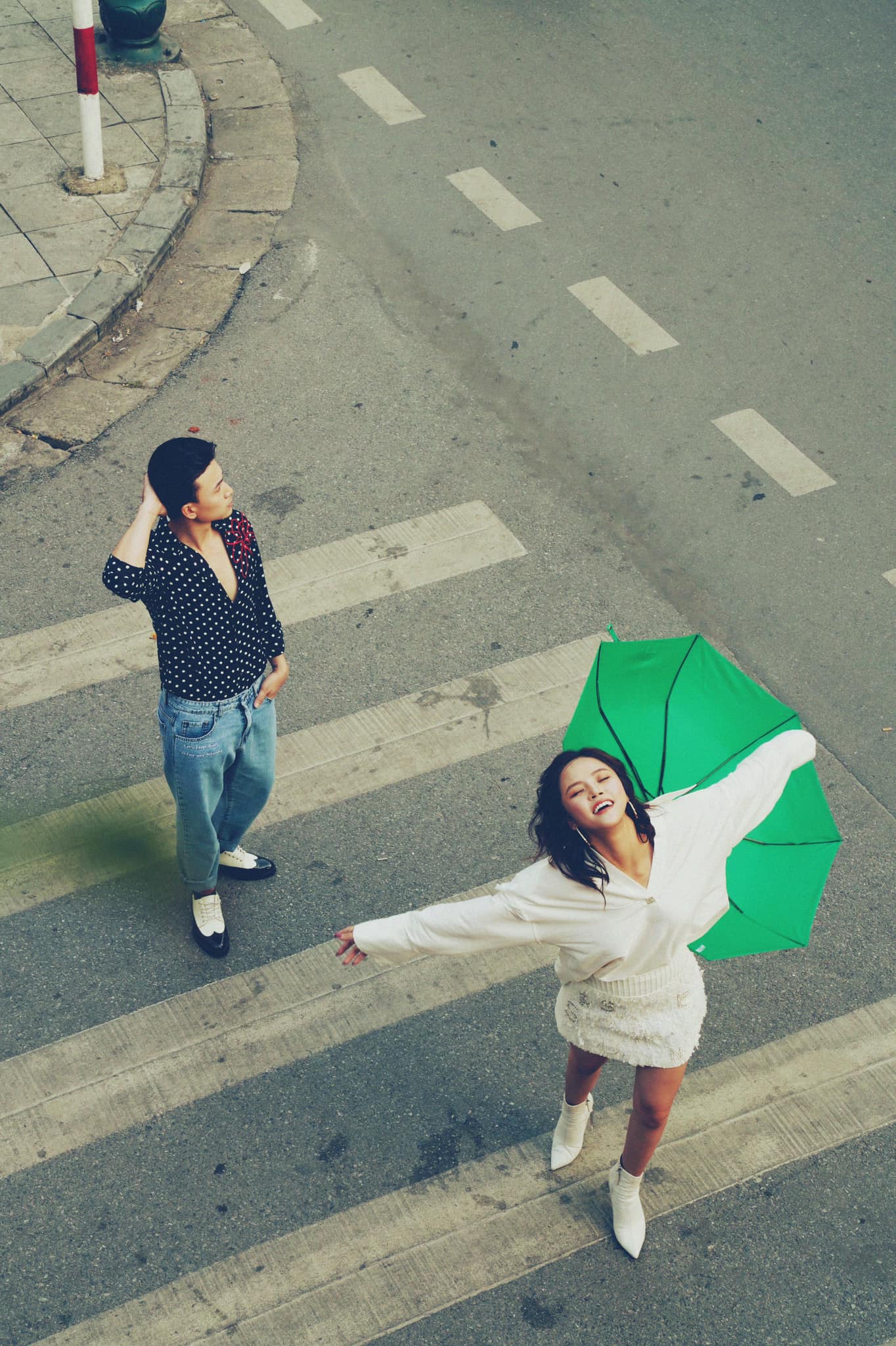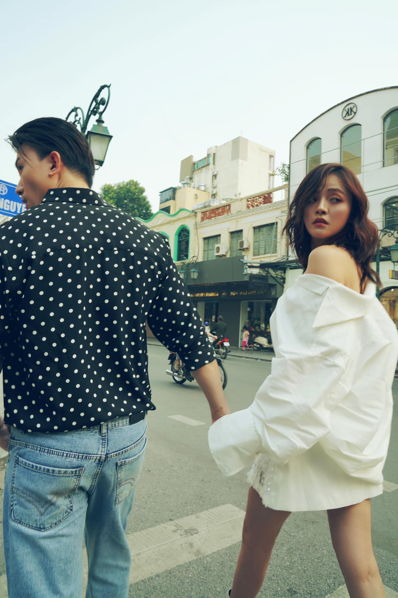 Trong bộ ảnh, Thu Quỳnh và Anh Vũ bước xuống phố với streetstyle cực ấn tượng. Không ăn diện giống nhau ở những lần lên phim nhưng vẫn nhận thấy sự đồng điệu của cặp đôi này ở nét cá tính, thời thượng và chút “bụi phủi”.