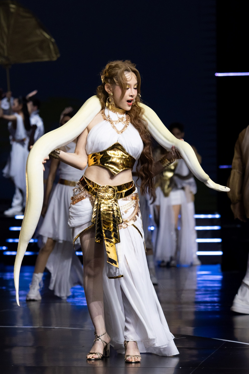 Cô kể: “Tôi sợ trăn, rắn, sợ độ cao và những động tác chóng mặt, nhưng bài Mashup Hoa nở không màu và Bông hoa đẹp nhất đều có đủ. Lúc ráp sân khấu là chính thức làm việc với động vật. Và phải đến giây phút đó mới cảm nhận rõ nỗi sợ ập đến”.