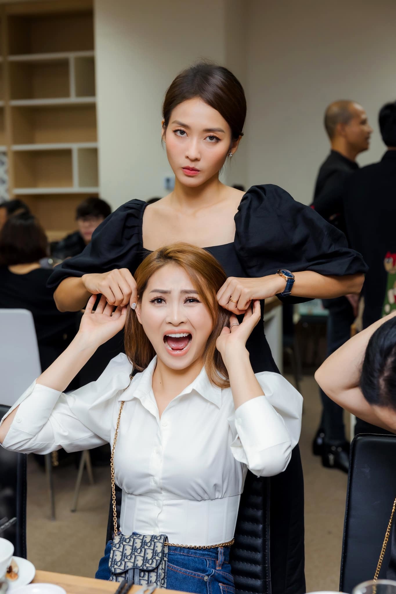 Vì phải quay nhiều góc máy nên tôi và Thanh Sơn cũng phải hôn ít nhất 2-3 lần. Có một kỷ niệm vui là khi thực hiện phân cảnh này, anh Sơn nhập tâm đến mức đẩy tôi đập người vào tường. Tôi hay đùa rằng mỗi khi đứng cạnh anh Sơn, tôi luôn cảm giác mất an toàn. Ví dụ như tôi đã thương tích nhẹ vì cú huých tay của anh Sơn trong Cuộc hẹn cuối tuần từng phát sóng".