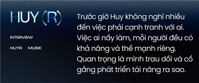 Trước giờ Huy không nghĩ nhiều đến việc phải cạnh tranh với ai. Việc ai nấy làm, mỗi người đều có khả năng và thế mạnh riêng. Quan trọng là mình trau dồi và cố gắng phát triển tài năng ra sao.