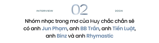 Nhóm nhạc trong mơ của Huy chắc chắn sẽ có anh Jun Phạm, anh BB Trần, anh Tiến Luật, anh Binz và không thể thiếu anh Rhymastic.
