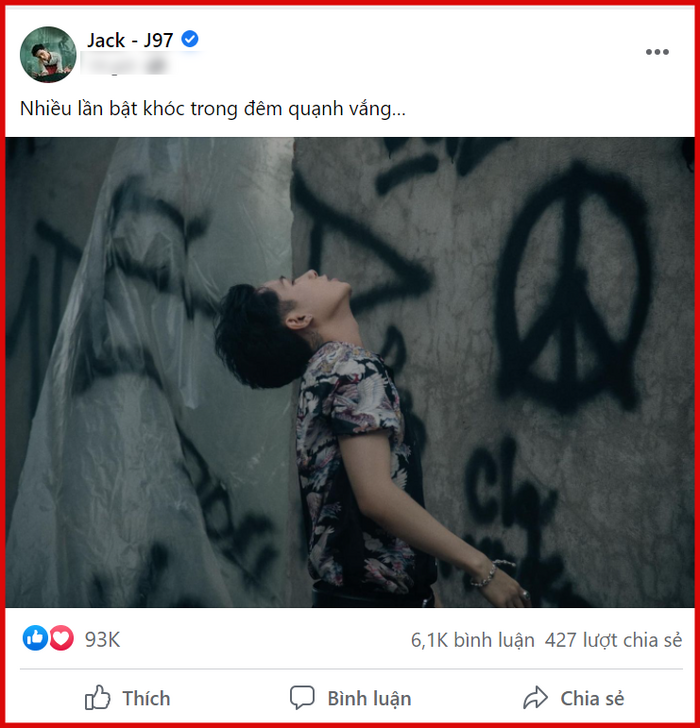 Khi dân mạng tò mò về phản ứng của Jack khi MV thu về hơn 1 triệu dislike thì mới đây Jack đã có động thái. Cụ thể, trên trang fanpage hơn 2 triệu người theo dõi của mình, Jack bất ngờ đăng tải bức ảnh được cắt ra từ trong MV và đính kèm dòng chú thích được trích từ câu hát trong ca khúc Ngôi sao cô đơn: "Nhiều lần bật khóc trong đêm quạnh vắng…".
