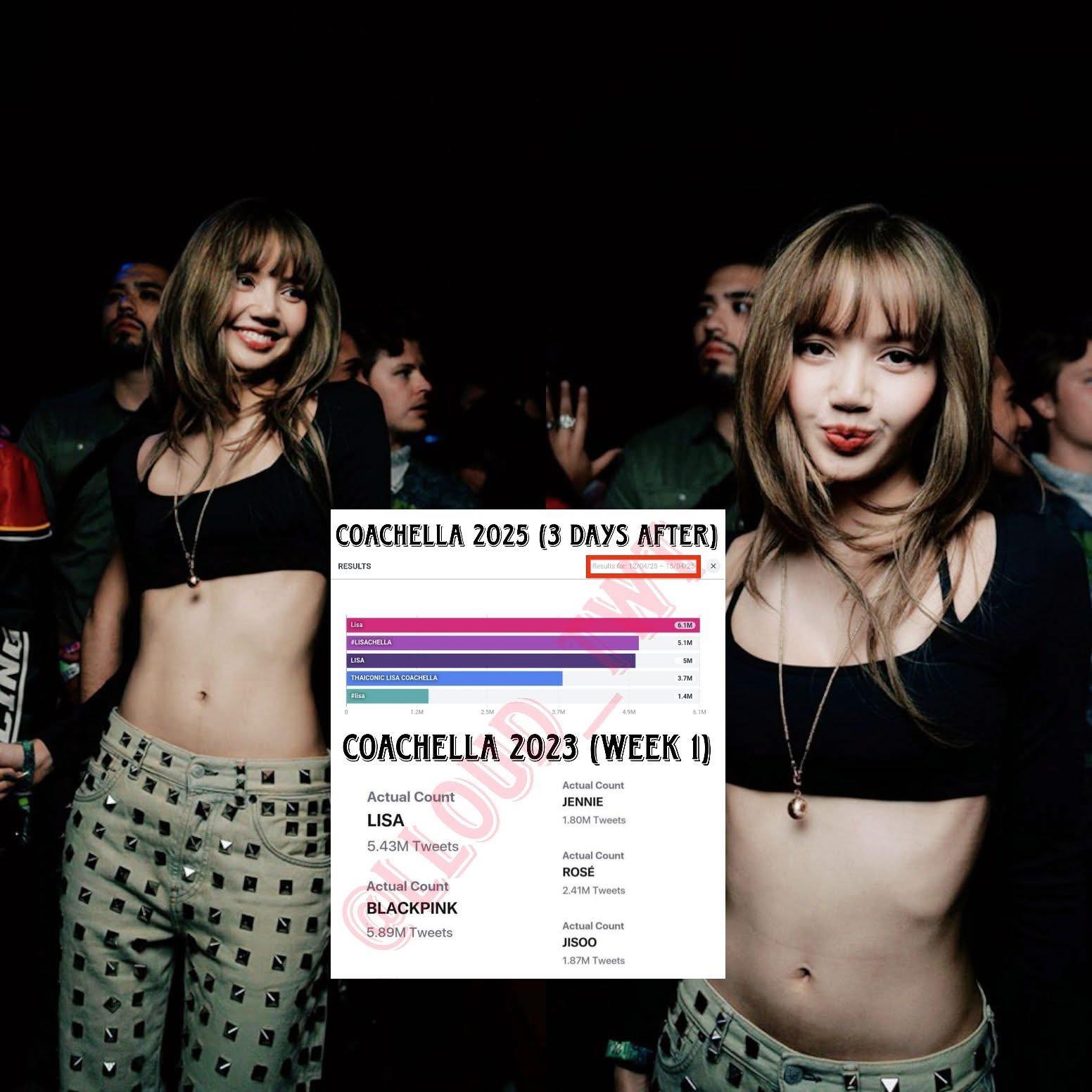 Sau 3 ngày, vào tối 15/4, Lisa tiếp tục phá kỷ lục được nhắc đến nhiều nhất trong tuần đầu Coachella với tổng 6 triệu bài đăng. Kỷ lục này trước đó thuộc về BLACKPINK (5,8 triệu) vào năm 2023. Coachella cũng đã đăng tải video biểu diễn 3 ca khúc mở màn của Lisa tại sân khấu Sahara, thu về hơn 1.6 triệu lượt xem trên YouTube. Từ khoá Lisa xếp thứ 3 tại mục tiêu điểm về Coachella trên TikTok, là nghệ sĩ Kpop duy nhất làm được điều này tại Coachella 2025.