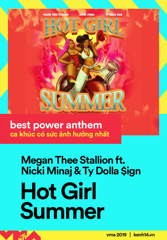Theo danh sách đề cử đã được thông vào cuối tháng 7, Taylor Swift và Ariana Grande chính là hai nghệ sĩ chiếm trọn tâm điểm năm nay với 10 hạng mục có tên cho mỗi người. Bám sát họ là Billie Eilish cũng gây bất ngờ khi được đề cử đến 9 hạng mục. Chàng "tân binh" Lil Nas với "con quái vật" "Old Town Road" dĩ nhiên cũng phủ kín với 8 hạng mục. Nào cùng điểm qua các chủ nhân của bốn giải thưởng quan trọng nhất và những hạng mục hấp dẫn khác tại MTV Video Music Awards 2019 nhé!
