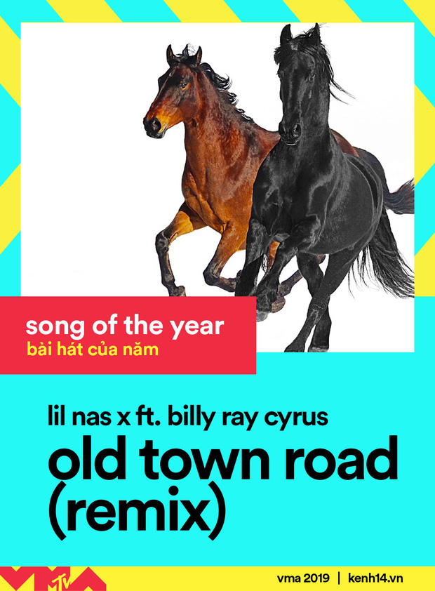 Giải thưởng "Song Of The Year" – "Ca khúc của năm" tất nhiên đã thuộc về "Old Town Road", bởi Lil Nas X từng sở hữu 19 tuần lễ cai trị ngai vàng Billboard Hot 100. Đồng thời, trở thành ca khúc bám trụ vị trí No.1 lâu nhất tại bảng xếp hạng này và phá vỡ bức tường thành vững chắc "One Sweet Day" của Mariah Carey & Boyz II Men và "Despacito" của Luis Fonsi, Daddy Yankee & Justin Bieber khi chúng đều "chễm chệ" Hot 100 suốt 16 tuần lễ. Bấy nhiêu đó cũng đủ để Lil Nas X khẳng định chiến thắng này là hoàn toàn thuyết phục.