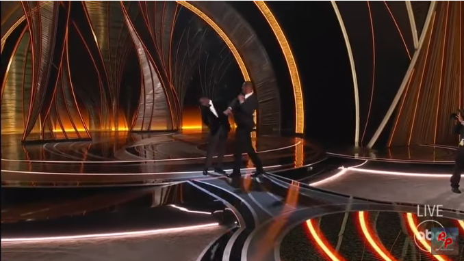 9:25: Một tình huống bất ngờ diễn ra khi nam tài tử Will Smith lên sân khấu và dành một cú tát cực mạnh thẳng mặt diễn viên Chris Rock bởi anh này nói đùa về Jada Pinkett Smith - vợ của Will Smith.