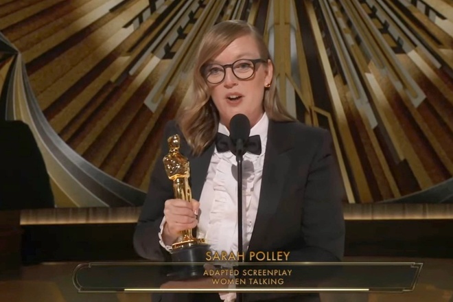 Ở hạng mục Kịch bản chuyển thể, nữ đạo diễn chiến thắng Sarah Polley với Women Talking.