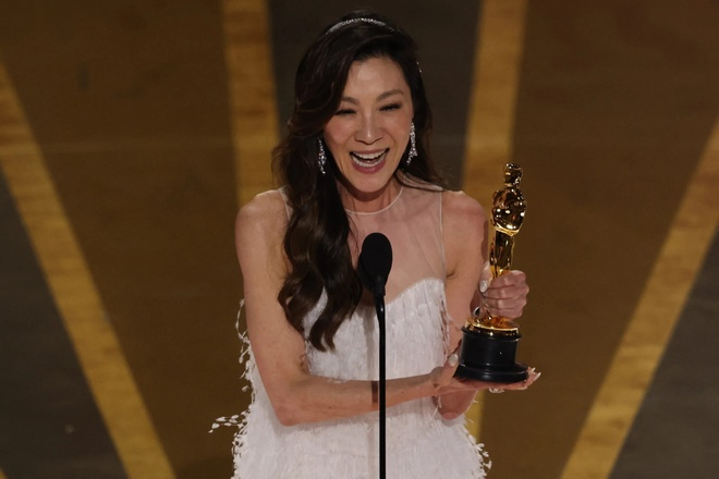 Cả khán phòng như vỡ òa trong khoảnh khắc Dương Tử Quỳnh làm nên lịch sử, vượt qua Cate Blanchett để trở thành minh tinh gốc Á đầu tiên thắng giải Nữ chính xuất sắc của Oscar.