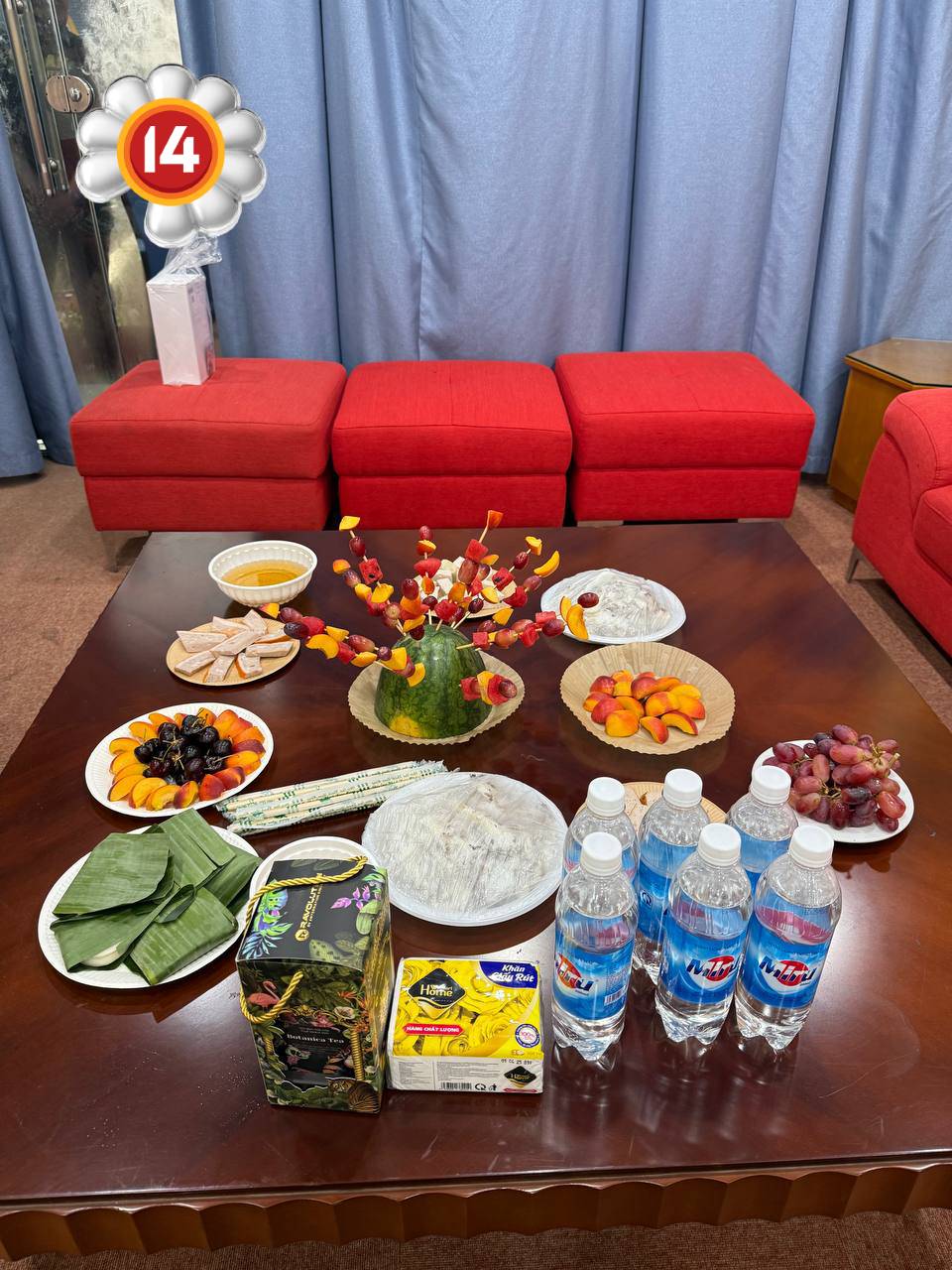 Tuy nhiên, chưa dừng lại ở đó, menu lần này còn có thêm một món ăn "gây chú ý" không kém: bánh dày. Không chỉ ngon miệng, bánh dày còn là món bánh "chắc bụng" - rất thích hợp để dùng nhanh trong khung giờ chiều muộn, khi các khách mời đã di chuyển và đứng chờ từ sớm để tham dự sự kiện.