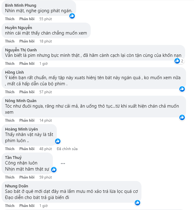 Hiện tại, nhân vật Nghĩa, Thạch, Bát đều khiến khán giả khó chịu mỗi lần xuất hiện. Trong đó, người xem đặc biệt ức chết với nhân vật Bát và cho rằng anh chàng này đã phá hỏng mạch phim, thậm chí cả bộ phim.
