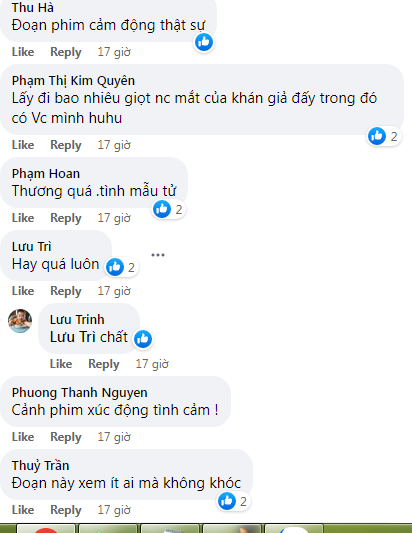 Trên MXH, nhiều khán giả bày tỏ họ đã rơi nước mắt với cảnh phim chứa chan tình mẫu tử này.